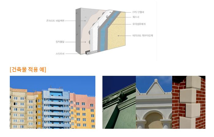 드라이비트(Dry-Vit)란 대표적으로 알려져 있는 외단열 공법입니다. 단열재, 접착제, 유리망섬유 그리고 마감재 이렇게 4가지 요소가 유기적으로 작용하여 30% 이상의 에너지 절감과 방수등 우수한 성능의 외단열 마감재로의 역할을 하고 있습니다. 현대화학공업㈜은 외벽단열의 가장 기본이 되는 단열판을 원료-발포-숙성-성형-건조-절단의 일련의 과정을 거쳐 최상의 품질로 소비자에게 공급하고 있습니다.